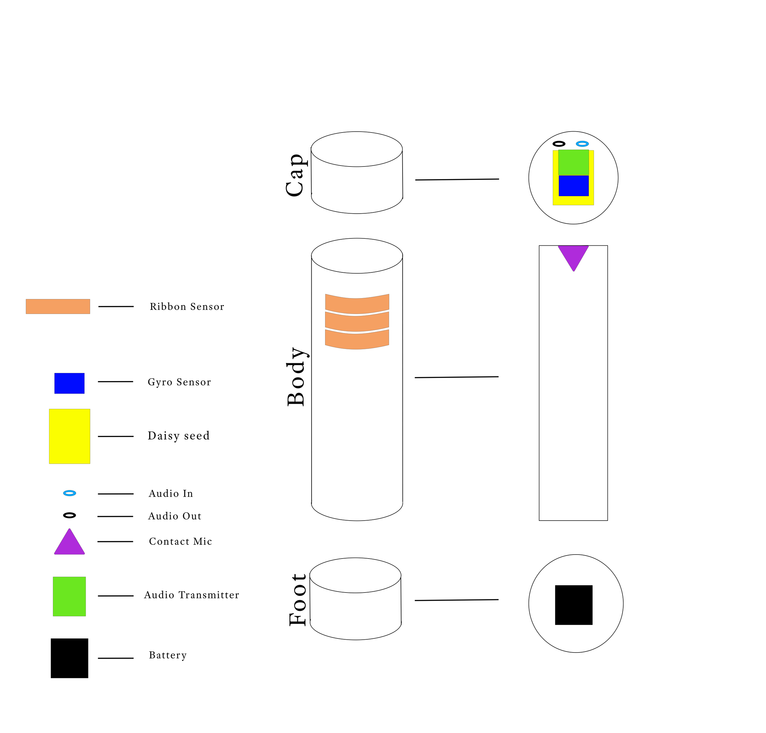 The ElectroAcuStick is very similar to a traditional rainstick but now the sound can be tuned. The instrument uses a contact microphone to pick up the sound of the rainstick and then sends that information to a Daisy Seed(Electrosmith) which processes the sound and tunes it so you can have control over the pitch.