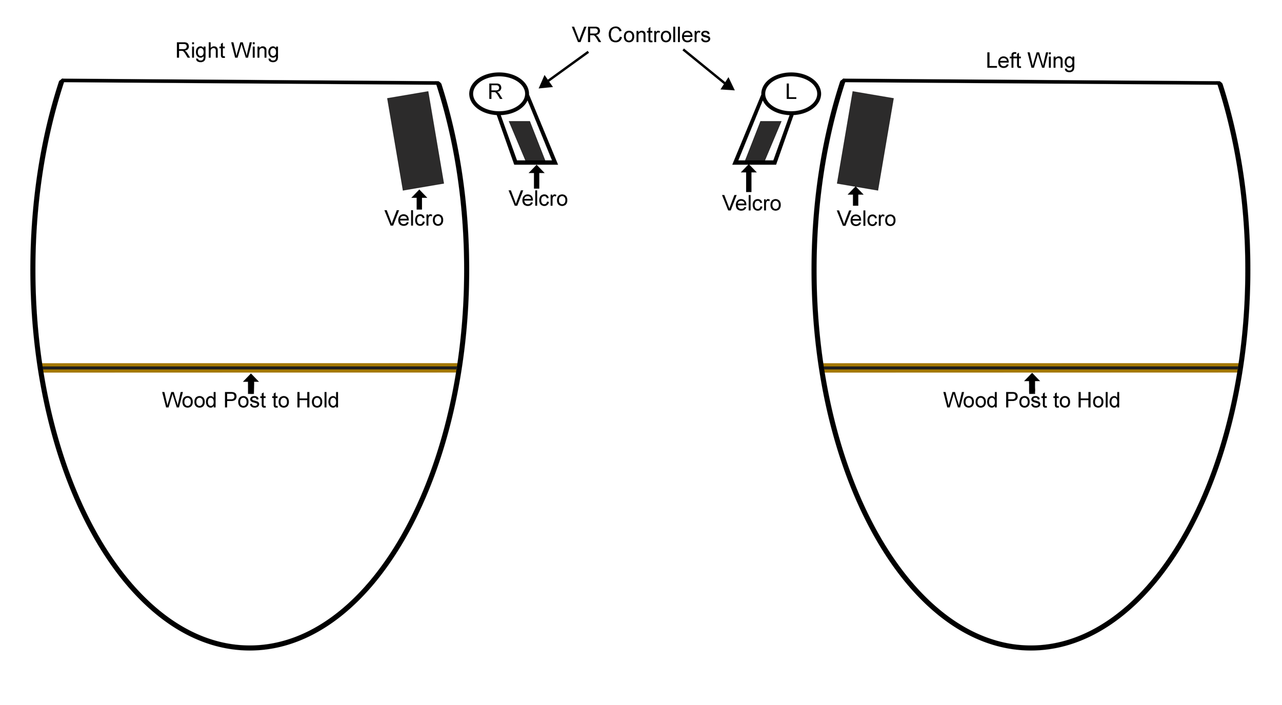In this game, you take on the role of a mother bird trying to find food for her babies. To get our naive guests in the headspace, my team and I built wing controllers for the player to wear and control the game. The mother bird sees a couple of food stands that have hot dogs and French fries that the bird will try to steal and bring back to her babies.